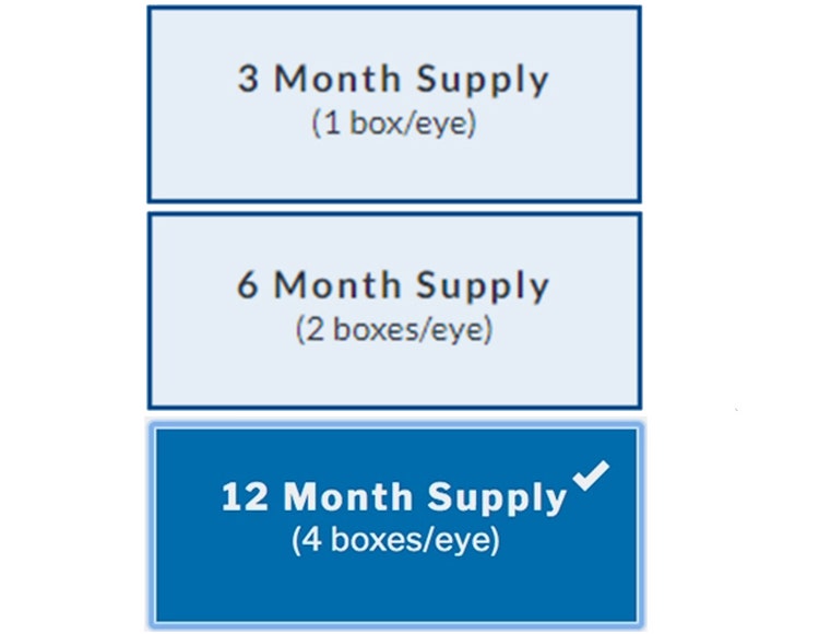 We make it easy! Once you find your box, decide on a 3-month, 6-month or annual supply. Note: It is important to always follow the prescribed wearing schedule for your contacts. Wearing lenses for longer periods of time than prescribed can be hazardous.