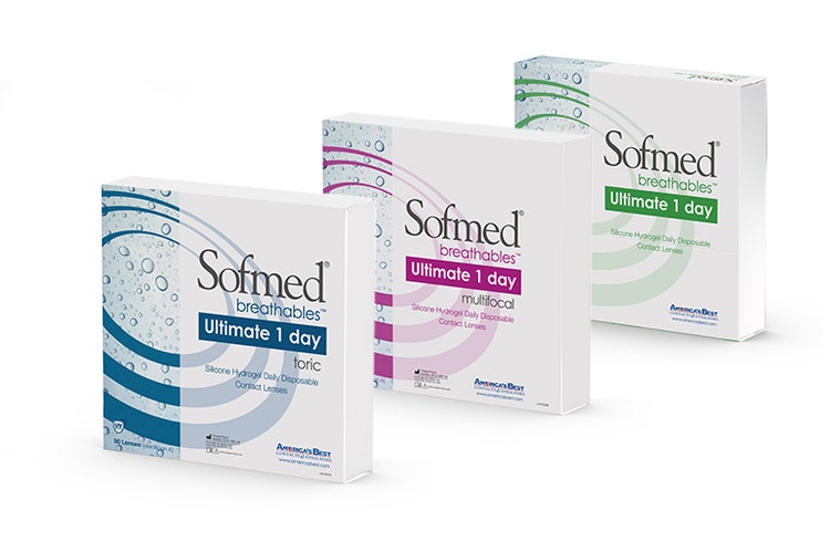 Sofmed® breathables™ Ultimate 1 day features Aquaform® Technology, which makes the lenses hydrated to 2x their weight in water. With the ability to provide correction for 99.9% of spherical prescriptions and the same optical design as Sofmed® breathables™ XW toric, Ultimate 1 day lenses offer a seamless transition. Book an exam to try Sofmed® breathables™ Ultimate 1 day.